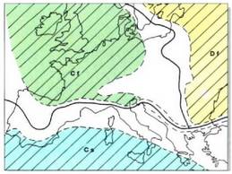 Ipar-ekialdeko zirkulazio motak ez dira oso sarriak izaten urtean zehar, % 1,3a soilik. Mendebalekoak, aldiz, urte guztian izaten dira, eta bi indize goren nabarmentzen dira, neguan bata, lehen mailakoa, era udaberrian bestea, bigarren mailakoa.