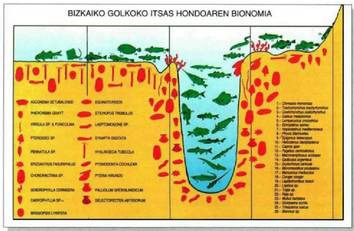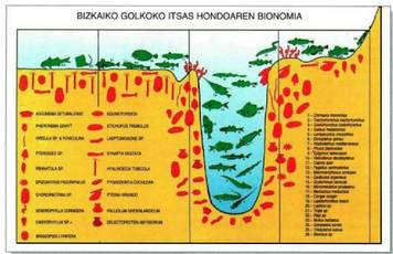 Itsasertzeko sakonera maila horiek garbi erakusten dute 20 metroko sakoneran ez dagoela fitobentorik Euskal Herriko kostaldearen inguruan. Fitobentorik ezak itsas hondoan nagusi den espeziearen produkzioa mugatzen du: Gelidium sesquipedale alga gorriarena, alegia. Alga hori oso interesgarria da merkataritzaren aldetik (agar-agar deritzan produktua alga horretatik ateratzen da) eta multzo handitan ageri da Euskal Herriko itsasertzaren aurrean. Gure itsasertzeko isobata 25 metrora dago eta hori da hain zuzen landare makrobentonikoen produkzio muga, nahiz 50 metro baino sakonago tarteka baden kare algarik, itsasertzeko haitzei loturik; Gelidium sesquipedale alga gorri multzoak, berriz, 10-12 metroko sakoneran izaten dira.
