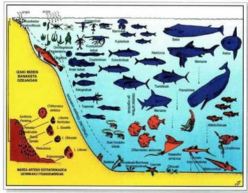 - Geruza afotikoa: Bostehun metrotik behera iluntasuna erabatekoa da, kimio edo bioluminiszentzia fenomenoek bakarrik ematen dute argitasun apur bat.