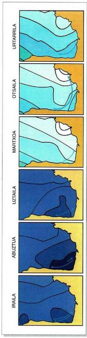 Kontinentalizazioaren ezaugarri horiek nabarmenak dira Bizkaiko Golkoko itsasertzean dauden hainbat herriren grafiko aerodinamikotan.