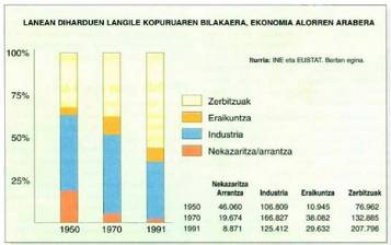 Industria jarduerak behera egin du azken berrogei urteetan, biztanleriak ordea ez, gaur egun 65.000 pertsona gehiago baitaude.