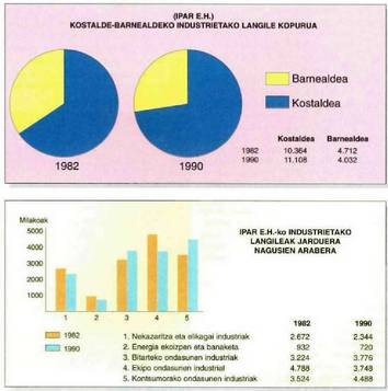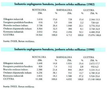 1978an, eta Estatistikako Erakunde Nazionalak egiten duen industria erroldaren arabera, 6.500 edo 7.000 lanpostu inguru galdu ziren, gehienak arlo hauetan: metalen ustiaketa eta lehenengo eraldaketan, material elektriko eta elektronikoan, ehungintzan eta zurgintzan, kortxogintzan eta altzarigintzan. Beste arlo batzuetan, berriz, lanpostu kopurua asko handitu zen: garraio materialgintzan, papergintzan eta grafikagintzan batez ere.