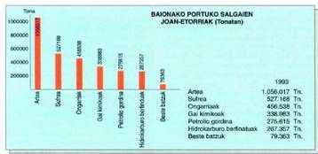 Horrekin guztiarekin batera, portuko instalazioak ere zabaltzen hasi ziren, Baiona barneko Saint-Esprit zubitik itsaso aldera. Ibaiaren eskuinaldean zementu olak, ale biltegiak eta produktu kimikoen fabrikak daude; ezkerraldean, berriz, hidrokarburoak, sufrea eta merkantziak daude. Hauek dira, besteak beste, portuko enpresa nagusiak: "Sotrasol" (produktu kimikoen azken biltegia), Midiko ("BH", "Shell" eta "Total") petrolioa fintzeko ola, Bizkaiko Labe Garaiak (altzairugintza), ongarria jasotzeko biltegia duen "Agropecuaria de Navarra" nekazari kooperatiba, (Pabeko kooperatibarekin eta "Matrama" elkartearekin loturik dagoena), "Socadour", "Reno- Satec", "Bois de Bayonne" zerrategiak...