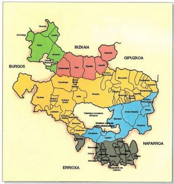 Haran bereiz eta independenteek osatzen dute 648 km 2 -ko lur eremua hartzen duen eskualde hau; lurralde hauek dira: Gaubea eta Balderejo (gune naturala) eta Koartangoko haranak; Lakozmendi eta Gesaltzako korridoreak; eta Erribera Goitia, Erribera Beitia, Lantaron, Aramiñon, Zanbrana eta Beranturiko herriak.