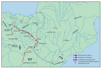 Zesarrek, konkistari begira, K.a. 46 eta 45ean bildu zuen gudaroste handiarekin, helburu hirukoitza erdietsi nahi zuen: gudari zaharrak kokatzea, herrialdea okupatzea eta erromatartze prozesuari ekitea.