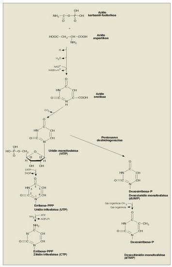 eta beste ATP edo GTP bilakatu.- Base piramidinikoen anabolismoa (6. irudia)