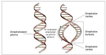 behar da, izan ere, DNA baita informazio genetiko horren eramaile. DNA errepikatzen