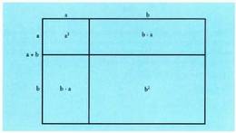 da berdintza honen azalpen geometrikoa :Hau da a+b aldearen koadroa : a aldeko koadroa gehi b aldea duen