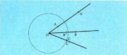 dela. c zirkunferentziako A eta B puntuak hartzen dira (bi edozein), baina O-rekin lerrokatuta daudenak. Beren eraldatuak