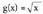 x-ek izate-eremuko balioak hartzerakoan g(x)-ek zenbaki erreal positibo guztiak eta zero balioak hartzen ditu, hau da, g-ren ibilbidea