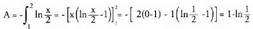 funtzioaren grafikoak eta x = 1 zuzenak mugatzen duten barrutiaren area.Barrutia OX ardatzaren azpian dago, eta kurbak ardatz hori x = 2