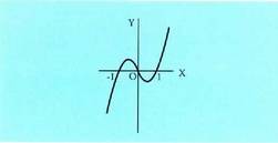 eginez, funtzioak OX ardatza x = 0, x = 1 eta x = -1 puntuetan ebakitzen duela ikusten da.-1 eta O-ren arteko barrutia positiboa da, eta 0 eta +1-en artekoa