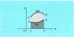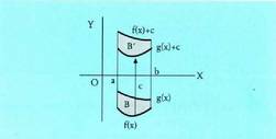 f + c eta g + c funtzioen grafikoek eta x = a eta x = b zuzenek mugatutako