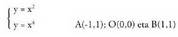 eta y = x4 kurbek mugatzen duten barrutiaren areaEbaki puntuak dira ekuazio sistema honen soluzioak :