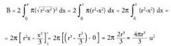 Gorputz horren bolumena zenbatekoa den jakin nahi da.Biraketa gorputza xerraka zatitzen bada, gutxi gorabehera zilindro bat izango da xerra bakoitza. Zilindro baten bolumena oinarriaren area bider altura da ; beraz, irudian nabarmendu den xerraren bolumena