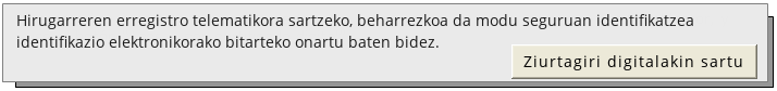 - Zerbitzu hau erabiltzeko ezinbestekoa da erabiltzailea identifikatuta egotea. Horretarako Eusko Jaurlaritzak onartutako ziurtagiri digitalen bat erabil dezakezu.