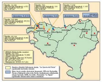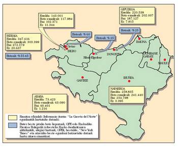 1966rako errejimenak ondo ikasi zuen bere jokabidea zuritzen; dagokion mapan ikus daitekeenez, frankismoak aldi baterako edo bidez dagoen biztanlearen figura asmatu zuen, eta, hala, boto zenbaketa egin ondoren, harritzeko moduko zifrak atera ziren: aldi baterako 131 biztanle Arrankudiagan (biztanle kopurua: 536), 1.350 Ermuan (biztanle kopurua: 5.047). Argi dago egunean zehar herritar bat bidazti ibil daitekeela, eta herri batean baino gehiagotan, are gehiago funtzionario baldin bada, esate baterako. Diktadurak ez zekien oso ongi zenbaterainoko begikotasuna zion herriak –egia esateko, bost axola hari– baina itxurak egiten tematzen zen.
