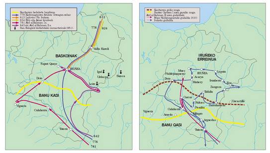 Iruñeko ahaideen eta Kasitarren arteko harreman on horiek VIII. mendearen azken herenean ere eman zituzten beren emaitzak. Abd al-Rahman I.aren aurka Zaragoza altxatu zenean, eta matxinatuek lehenbizi Karlomagnori etortzeko eskatu eta gero ukatu ondoren erregea eta haren gudarosteak preso eta gatibu zeramatzatela beren herrialdera itzultzera zihoazenean, indar elkartuen ekintzak jasan zituzten eta baskoiek gudaroste horien atzegoardiari egindako erasoa, gerora “Vallis Karoli” izenez ezagutuko den mendi lepoan (778). Erasoaldiak eta lurraldea menderatzeko ahaleginak izan ziren gero ere Iparraldetik nahiz Hegoaldetik.