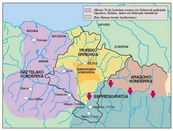 Iruñeko handikiek, gobernua Antso Ramirez Aragoiko erregearen esku uztea aukeratu zuten; errege horri bere seme Pedro I.a eta Alfontso I.a Gudulariak jarraitu zioten. Mende erdi horretan Iruñeko erreinuak aldaketa handiak izan zituen lurralde, gizarte eta ekonomi mailan. Gipuzkoa, Durangaldea, Bizkaia eta Arabak, Naxera eta Kalagorriko lurralde errioxarrak bereganatu zituen Gaztelako Alfontso VI.aren agindupean egotea aukeratu zuten bitartean, Islamaren mendean zeuden lurrak berreskuratzeari bultzada handia eman zitzaion, eta hala itxuratu zen hegoaldeko muga. Antso Ramirezek, Ayerbe (1083), Arguedas (1084) eta beste leku asko atzeman zituen, eta Huescako setioan hil zen (1094). Haren semeek, ordea, aurrera jarraitu zuten gudaldiekin eta Alfontso Gudulariak eman zien buru gudaldi horiei Ebro Harana bereganaturik (Zaragoza, 1118, Tutera eta inguruko lur idorrak, 1119).Lur eraspen hauek ez zuten ekarri, heriotza edo deserriratzeen bidez, mairu eta judu komunitateen desagerpenik, horien osotasun, nortasun eta araudi sozial eta erlijiosoak foru berezien bidez zaindurik eta babesturik jarraitu baitzuten, nahiz eta kristauengandik bereizita auzo eta aljametan baztertuak izan. Nafarroako judu jakintsuenetako bat Tuterako Benjamin izan zen, Libro de Viajes, 1166 aldera Asia Txikian zehar egin zuen bidaiaren berri ematen duen liburuaren egilea.
