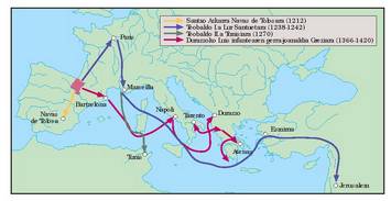 Luis hori, erregearen anaia, Joana Siziliakoa Durazzo dukerriko oinordekoarekin ezkonduta zegoen; nafarrak Durazzo hiriaz jabetu ziren (1375). Infantea hil zenean, Greziako lurraldeetan zehar jarraitu zuten Jerusalemgo San Joan Ordenaren Buruzagi Nagusiaren zerbitzuan.Karlos III.a Noblearen erregetzak funtsezko aldaketak ekarri zituen politikan.