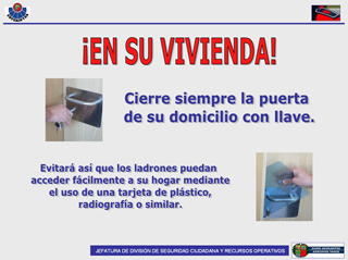 - Cerrar siempre la puerta con llave para evitar que puedan acceder mediante una tarjeta de plástico, radiografía o similar.