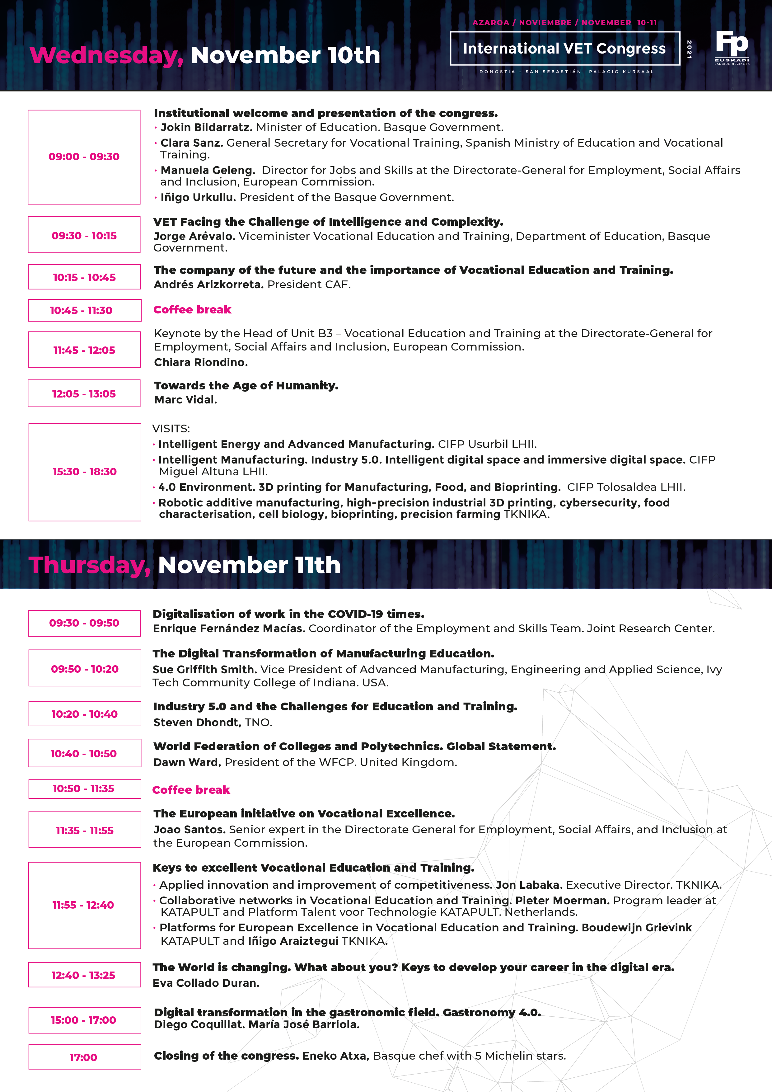 High-level speakers in different fields will participate in this congress, all of them referring to the advancement of the 4th industrial revolution and its involvement in Vocational Training.
