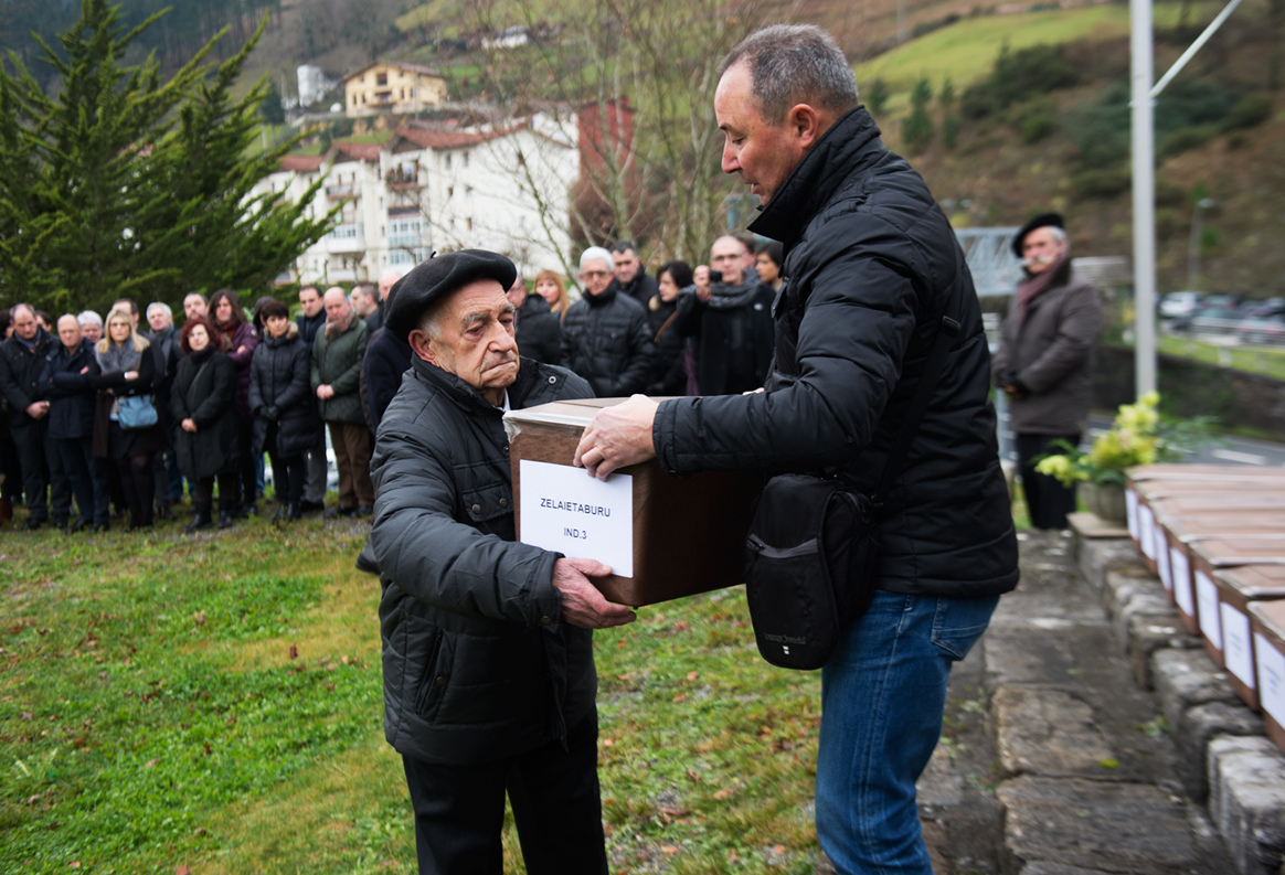 Gorpuzkiak Elgoibarko Duintasunaren Kolunbarioan ehortzi ziren, 2018ko otsailaren 9an, Gogora Memoriaren, Bizikidetzaren eta Giza Eskubideen Institutuak antolatutako ekitaldian.