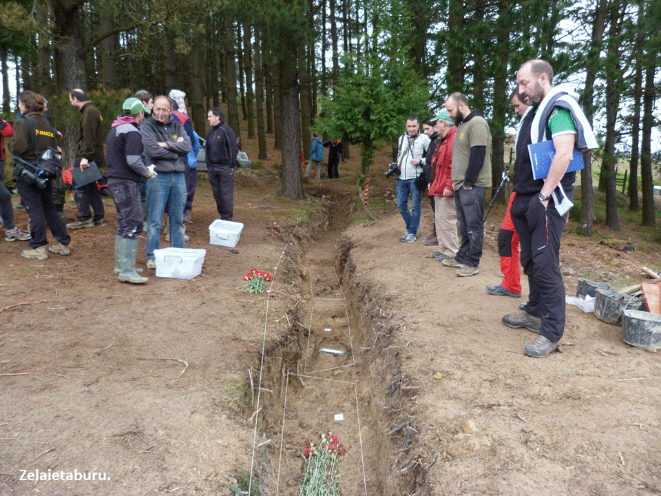 Zelaietaburuko baserrietako (Etxebarria, Bizkaia) hainbat auzokidek emandako informazioaren arabera jakin ahal izan zen ondoko mendiaren goiko aldean hainbat soldatu omen zeudela lurperatuta. Markinako Ahaztuen Oroimena eta Elgoibarko Elgoibar 1936 taldeko kideek azterketa-lanak egin zituzten bertan. Izan ere, 1937ko apirilean hilabetez geldik egon ondoren, Euzkadiko Gudarosteko soldaduek posizioak defendatu zituzten, tropa frankistak aurrera egiten hasi zirenean. Tropa matxinatuak Elgoibarren, San Martin ermita eta Ziardamendi ingurua hartu ondoren, Zelaietaburuko zaintza-postu hori bilakatu zen Euzkadiko Gudarosteko hurrengo defentsa-posizioa.